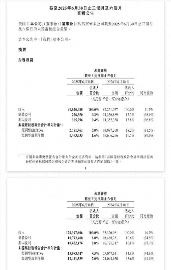 在昨天,美团发布的二季度财报中,二季度调整后净利润14.9亿,同比暴跌89%,远低于市场预期的98.5亿元。