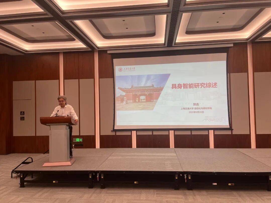 在上午的培训中,首先由上海交通大学自动化与感知学院副研究员郭逸先生进行专题授课,郭逸先生从具身智能的概念起源与技术特性切入,系统分析了具身世界模型构建、数据训练、控制技术等关键路径,为学员搭建起清晰的具身智能理论认知体系。