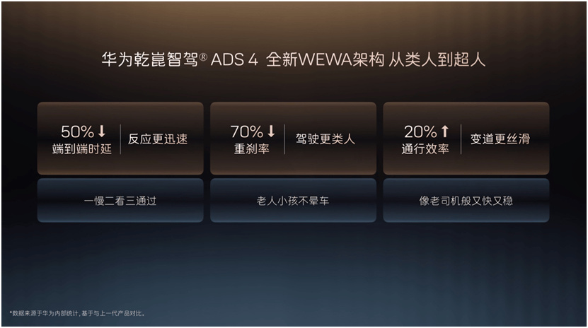 在软件层面,新车搭载华为乾崑ADS 4,基于WEWA技术架构实现从“模仿人类”到“超越人类”的决策进化,通行效率上提升20%,重刹率降低30%,端到端时延降低50%,体验更贴近“人驾”般流畅自然。全维防碰撞系统CAS 4.0进一步拓展感知与响应能力,可精准识别特种车辆、外卖骑手等特殊目标,并对“鬼探头”等突发场景实现微秒级识别与制动响应。此外,阿维塔12四激光版搭载鸿蒙座舱HarmonySpace 5,不仅在交互上更为丝滑,更在智慧能力上实现跨越,助力整车智能体验迈向新高度。