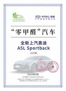 > 全新上汽奥迪A5L Sportback 荣获中汽中心“零甲醛”汽车认证