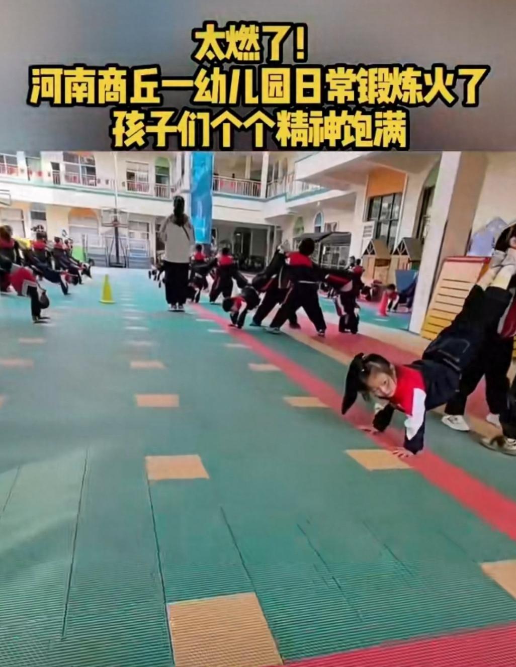 先看这张图,想想你身边幼儿园的孩子每天都在干啥?是埋头在“幼小衔接”的题海里,还是捧着iPad看动画片?再看看河南商丘这所农村幼儿园的娃们——独木桥上狂奔、跳箱连续跨越、单杠上玩出花……