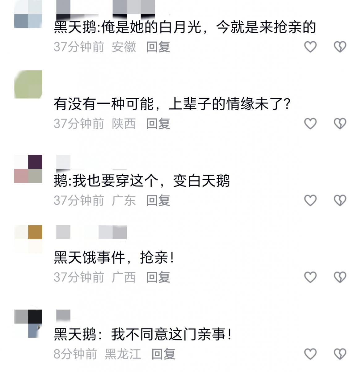 这段充满惊喜的婚纱照片段被传到网上后,迅速走红。网友们纷纷被这有趣的场景逗乐,调侃这是黑天鹅在“抢新娘”,更被新郎下意识护妻的举动打动,留言称“这波意外反而让婚纱照更有纪念意义”。