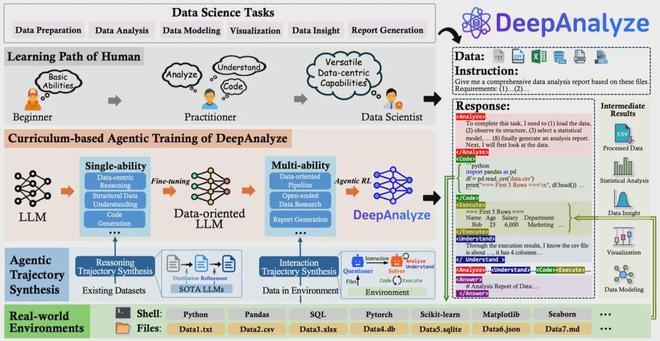 DeepAnalyze是首个面向数据科学的Agentic LLM,无需任何workflow,仅凭一个LLM即可像数据科学家一样,自主完成多种复杂的数据任务。