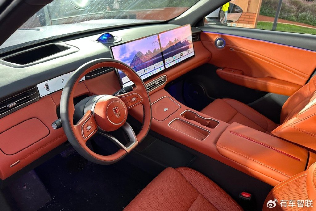 车尾部分,红旗HS6 PHEV取消现款车型的贯穿式灯组,采用名为“凤翎尾”的尾灯设计,锐利切面晶体与渐变灯带相融合,隐藏式排气布局更显简洁。