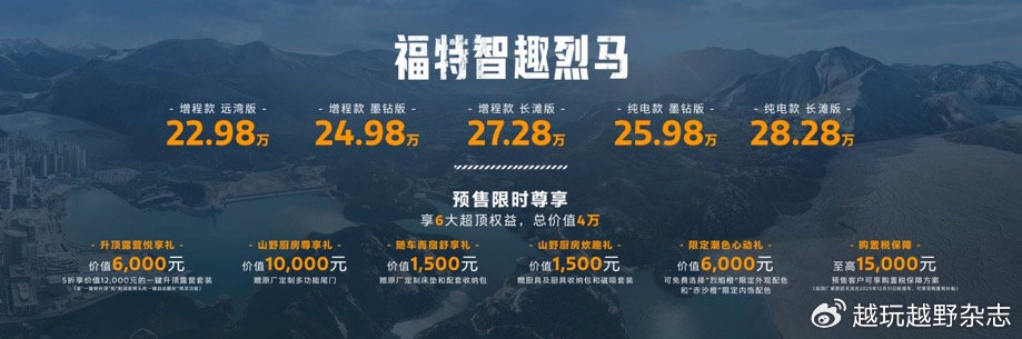 福特智趣烈马:全地形露营SUV预售开启,预售价22.98万元起