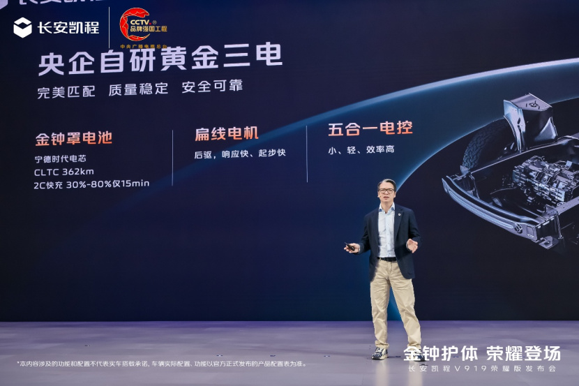 除了搭载宁德时代电芯的金钟罩电池,V919荣耀版更进一步融合中国长安自研新一代二合一扁线电机与中国长安首创的商用五合一动力域控制器,黄金三电系统深度协同,实现1+1+1>3的匹配效果,实现性能、效能的极大跃升。